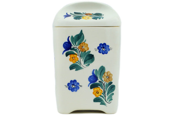 This Fleeting Moment 7" Jar with Lid was handmade and hand decorated in Boleslawiec, Poland by skilled artisans according to old traditional methods. This Polish stoneware is microwave, dishwasher, freezer, and oven safe up to 480°F. It does not contain lead or cadmium. It is part of the Fleeting Moment Collection.