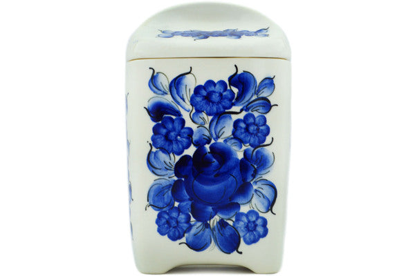 This Lagoon 7" Jar with Lid was handmade and hand decorated in Boleslawiec, Poland by skilled artisans according to old traditional methods. This Polish stoneware is microwave, dishwasher, freezer, and oven safe up to 480°F. It does not contain lead or cadmium. It is part of the Lagoon Collection.