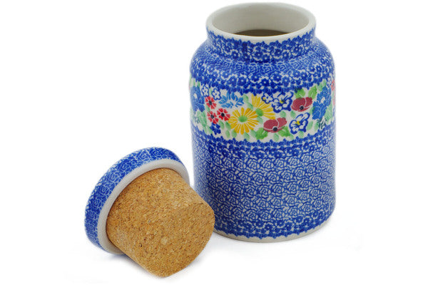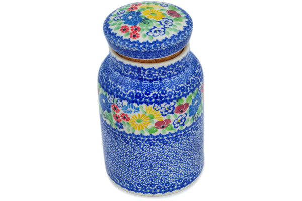 This Patio Views 7" Jar with Lid was handmade and hand decorated in Boleslawiec, Poland by skilled artisans according to old traditional methods. This is a Polish pottery Signature Unikat, which means that it has been hand painted with both sponges and brushes and it is signed by the artist who painted it. Unikat pieces are the most intricate works of art. Larger Unikat items take hours of very careful work to finish. This Polish stoneware is microwave, dishwasher, freezer, and oven safe up to 480°F. It does not contain lead or cadmium. It is part of the Patio Views Collection.