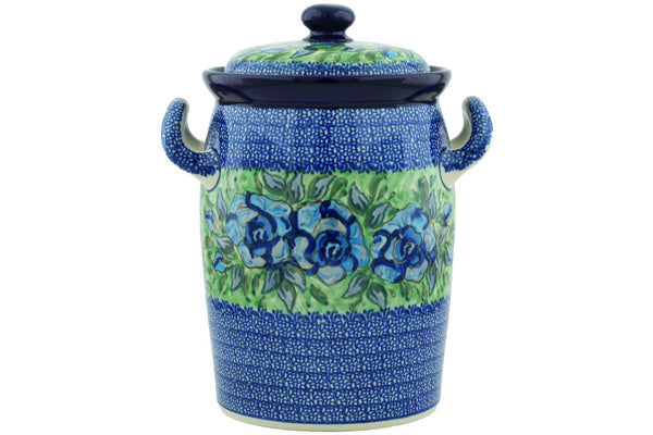 This Matisse Flowers Cobalt 11" Jar with Lid and Handles was handmade and hand decorated in Boleslawiec, Poland by skilled artisans according to old traditional methods. This is a Polish pottery Signature Unikat, which means that it has been hand painted with both sponges and brushes and it is signed by the artist who painted it. Unikat pieces are the most intricate works of art. Larger Unikat items take hours of very careful work to finish. This Polish stoneware is microwave, dishwasher, freezer, and oven safe up to 480°F. It does not contain lead or cadmium. It is part of the Matisse Flowers Cobalt Collection.