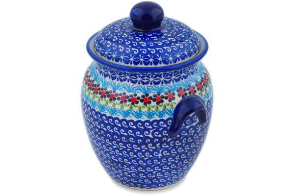 This Cheerful Poppies 7" Jar with Lid and Handles was handmade and hand decorated in Boleslawiec, Poland by skilled artisans according to old traditional methods. This Polish stoneware is microwave, dishwasher, freezer, and oven safe up to 480°F. It does not contain lead or cadmium. It is part of the Cheerful Poppies Collection.