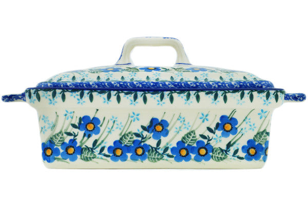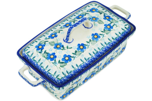 This Blue Joy 9" Jar with Lid and Handles was handmade and hand decorated in Boleslawiec, Poland by skilled artisans according to old traditional methods. This Polish stoneware is microwave, dishwasher, freezer, and oven safe up to 480°F. It does not contain lead or cadmium. It is part of the Blue Joy Collection.