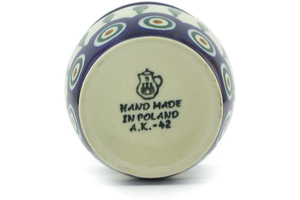 This Peacock Leaves 4" Jar with Lid with Opening was handmade and hand decorated in Boleslawiec, Poland by skilled artisans according to old traditional methods. This Polish stoneware is microwave, dishwasher, freezer, and oven safe up to 480°F. It does not contain lead or cadmium. It is part of the Peacock Leaves Collection.