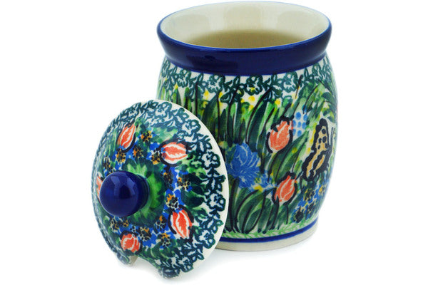 This Tigerwing Butterfly 4" Jar with Lid with Opening was handmade and hand decorated in Boleslawiec, Poland by skilled artisans according to old traditional methods. This is a Polish pottery Signature Unikat, which means that it has been hand painted with both sponges and brushes and it is signed by the artist who painted it. Unikat pieces are the most intricate works of art. Larger Unikat items take hours of very careful work to finish. This Polish stoneware is microwave, dishwasher, freezer, and oven safe up to 480°F. It does not contain lead or cadmium. It is part of the Tigerwing Butterfly Collection.