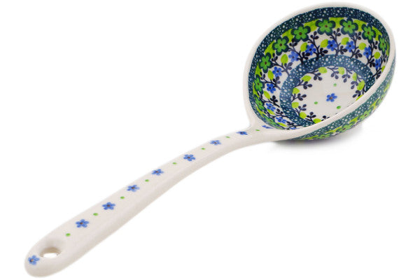 This Green Chrysanthemums 13" Ladle was handmade and hand decorated in Boleslawiec, Poland by skilled artisans according to old traditional methods. This is a Polish pottery Signature Unikat, which means that it has been hand painted with both sponges and brushes and it is signed by the artist who painted it. Unikat pieces are the most intricate works of art. Larger Unikat items take hours of very careful work to finish. This Polish stoneware is microwave, dishwasher, freezer, and oven safe up to 480°F. It does not contain lead or cadmium. It is part of the Green Chrysanthemums Collection.