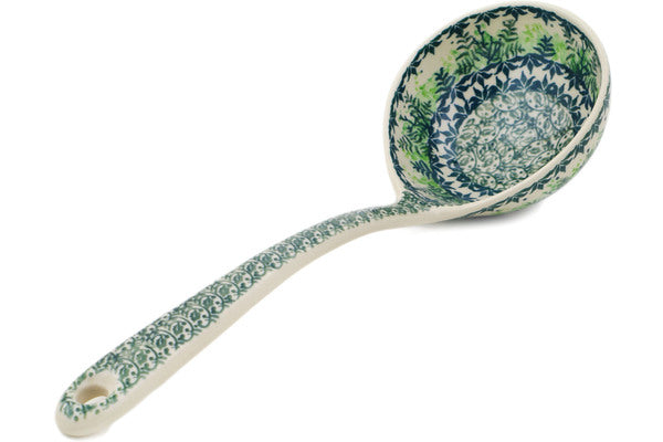 This Leafy Garden 13" Ladle was handmade and hand decorated in Boleslawiec, Poland by skilled artisans according to old traditional methods. This is a Polish pottery Signature Unikat, which means that it has been hand painted with both sponges and brushes and it is signed by the artist who painted it. Unikat pieces are the most intricate works of art. Larger Unikat items take hours of very careful work to finish. This Polish stoneware is microwave, dishwasher, freezer, and oven safe up to 480°F. It does not contain lead or cadmium. It is part of the Leafy Garden Collection.