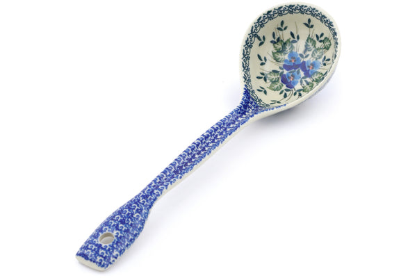 This Sweet Blue Spring 13" Ladle was handmade and hand decorated in Boleslawiec, Poland by skilled artisans according to old traditional methods. This Polish stoneware is microwave, dishwasher, freezer, and oven safe up to 480°F. It does not contain lead or cadmium. It is part of the Sweet Blue Spring Collection.