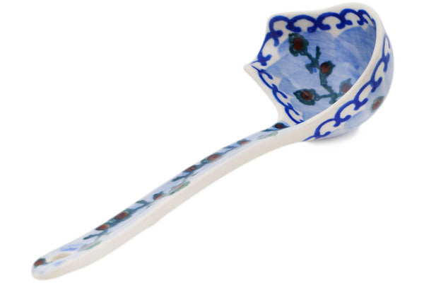This Blue Poppy Circle 7" Ladle was handmade and hand decorated in Boleslawiec, Poland by skilled artisans according to old traditional methods. This is a Polish pottery Signature Unikat, which means that it has been hand painted with both sponges and brushes and it is signed by the artist who painted it. Unikat pieces are the most intricate works of art. Larger Unikat items take hours of very careful work to finish. This Polish stoneware is microwave, dishwasher, freezer, and oven safe up to 480°F. It does not contain lead or cadmium. It is part of the Blue Poppy Circle Collection.