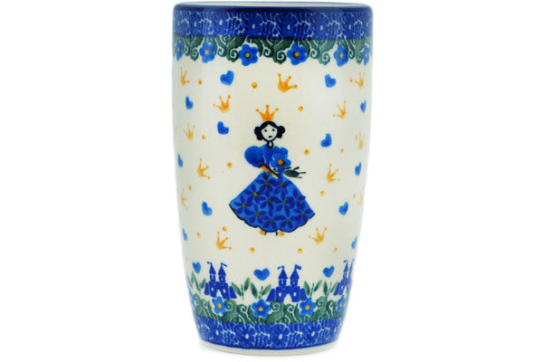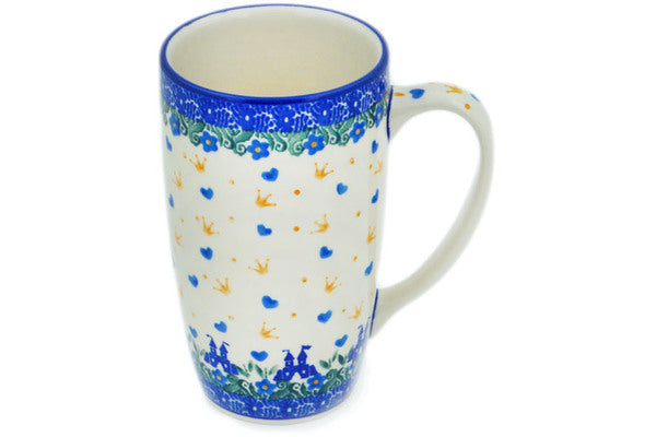 This Blue Castle Princess 14 oz Latte Mug was handmade and hand decorated in Boleslawiec, Poland by skilled artisans according to old traditional methods. This Polish stoneware is microwave, dishwasher, freezer, and oven safe up to 480°F. It does not contain lead or cadmium. It is part of the Blue Castle Princess Collection.