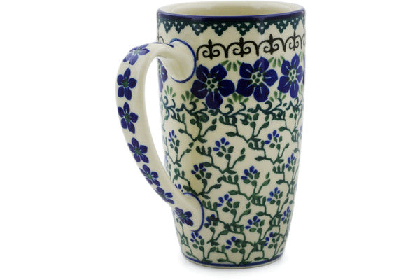 This Blue Dogwood 14 oz Latte Mug was handmade and hand decorated in Boleslawiec, Poland by skilled artisans according to old traditional methods. This Polish stoneware is microwave, dishwasher, freezer, and oven safe up to 480°F. It does not contain lead or cadmium. It is part of the Blue Dogwood Collection.