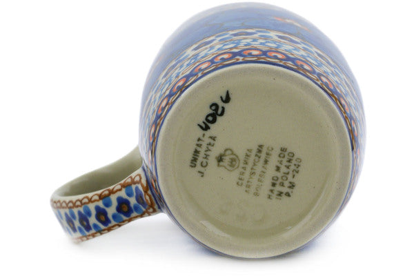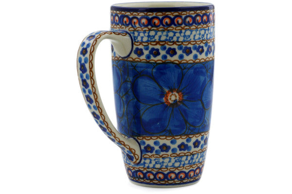 This Blue Poppies 14 oz Latte Mug was handmade and hand decorated in Boleslawiec, Poland by skilled artisans according to old traditional methods. This is a Polish pottery Signature Unikat, which means that it has been hand painted with both sponges and brushes and it is signed by the artist who painted it. Unikat pieces are the most intricate works of art. Larger Unikat items take hours of very careful work to finish. This Polish stoneware is microwave, dishwasher, freezer, and oven safe up to 480°F. It does not contain lead or cadmium. It is part of the Blue Poppies Collection.