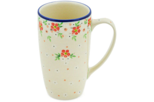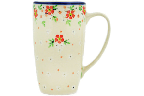 This Blushing Blooms 14 oz Latte Mug was handmade and hand decorated in Boleslawiec, Poland by skilled artisans according to old traditional methods. This Polish stoneware is microwave, dishwasher, freezer, and oven safe up to 480°F. It does not contain lead or cadmium. It is part of the Blushing Blooms Collection.