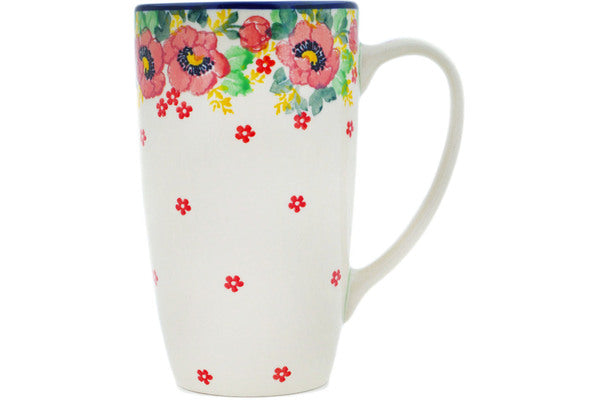 This Blushing Poppies 14 oz Latte Mug was handmade and hand decorated in Boleslawiec, Poland by skilled artisans according to old traditional methods. This Polish stoneware is microwave, dishwasher, freezer, and oven safe up to 480°F. It does not contain lead or cadmium. It is part of the Blushing Poppies Collection.