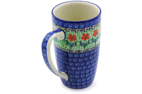 This Maraschino 14 oz Latte Mug was handmade and hand decorated in Boleslawiec, Poland by skilled artisans according to old traditional methods. This Polish stoneware is microwave, dishwasher, freezer, and oven safe up to 480°F. It does not contain lead or cadmium. It is part of the Maraschino Collection.