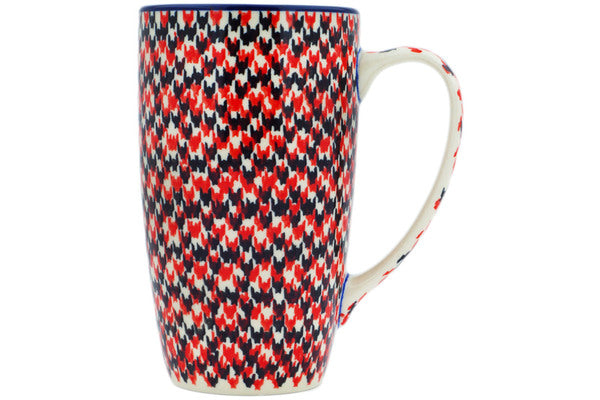 This Red Houndstooth 14 oz Latte Mug was handmade and hand decorated in Boleslawiec, Poland by skilled artisans according to old traditional methods. This Polish stoneware is microwave, dishwasher, freezer, and oven safe up to 480°F. It does not contain lead or cadmium. It is part of the Red Houndstooth Collection.