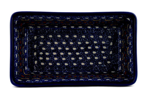 This Blue Horizons 8" Loaf Pan 8" was handmade and hand decorated in Boleslawiec, Poland by skilled artisans according to old traditional methods. This Polish stoneware is microwave, dishwasher, freezer, and oven safe up to 480°F. It does not contain lead or cadmium. It is part of the Blue Horizons Collection.