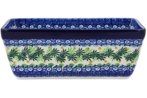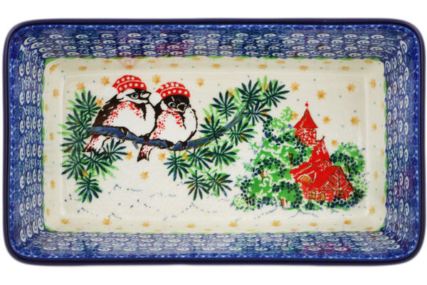 This Cozy Bullfinch 8" Loaf Pan 8" was handmade and hand decorated in Boleslawiec, Poland by skilled artisans according to old traditional methods. This is a Polish pottery Signature Unikat, which means that it has been hand painted with both sponges and brushes and it is signed by the artist who painted it. Unikat pieces are the most intricate works of art. Larger Unikat items take hours of very careful work to finish. This Polish stoneware is microwave, dishwasher, freezer, and oven safe up to 480°F. It does not contain lead or cadmium. It is part of the Cozy Bullfinch Collection.