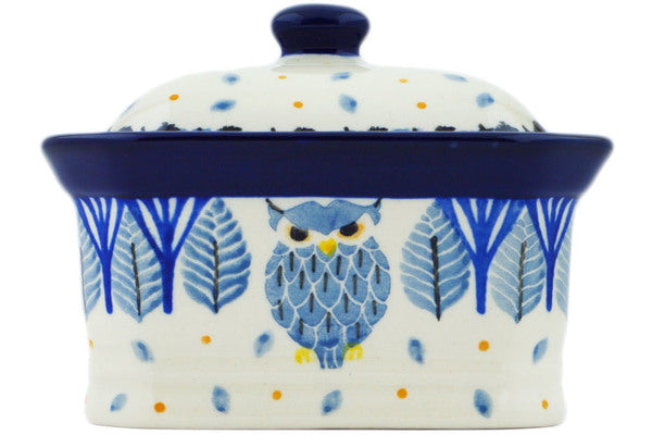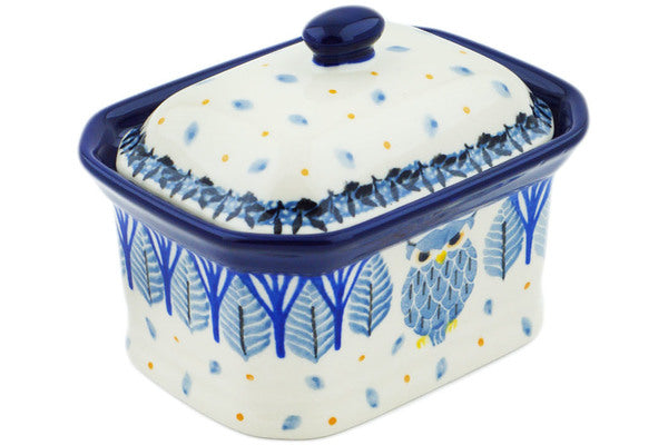 This Pastel Hooter 4" Mini Cake Box 4", Salt Box, was handmade and hand decorated in Boleslawiec, Poland by skilled artisans according to old traditional methods. This is a Polish pottery Signature Unikat, which means that it has been hand painted with both sponges and brushes and it is signed by the artist who painted it. Unikat pieces are the most intricate works of art. Larger Unikat items take hours of very careful work to finish. This Polish stoneware is microwave, dishwasher, freezer, and oven safe up to 480°F. It does not contain lead or cadmium. It is part of the Pastel Hooter Collection.