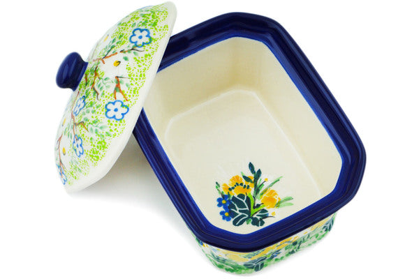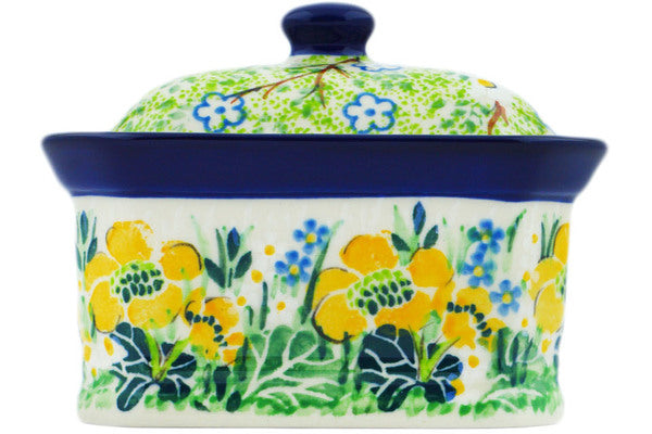 This Peaceful Garden 4" Mini Cake Box 4", Salt Box, was handmade and hand decorated in Boleslawiec, Poland by skilled artisans according to old traditional methods. This is a Polish pottery Signature Unikat, which means that it has been hand painted with both sponges and brushes and it is signed by the artist who painted it. Unikat pieces are the most intricate works of art. Larger Unikat items take hours of very careful work to finish. This Polish stoneware is microwave, dishwasher, freezer, and oven safe up to 480°F. It does not contain lead or cadmium. It is part of the Peaceful Garden Collection.