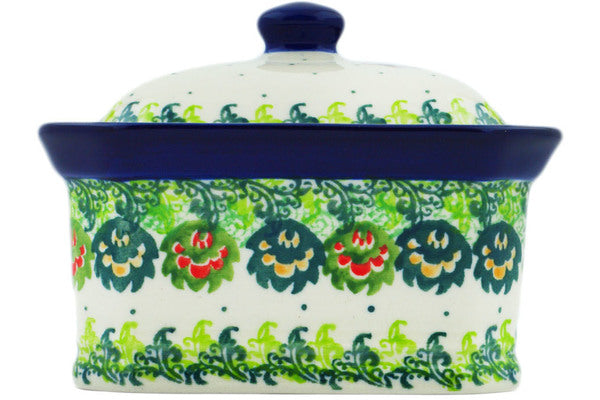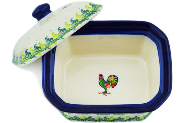 This Rooster's Crow 4" Mini Cake Box 4", Salt Box, was handmade and hand decorated in Boleslawiec, Poland by skilled artisans according to old traditional methods. This is a Polish pottery Signature Unikat, which means that it has been hand painted with both sponges and brushes and it is signed by the artist who painted it. Unikat pieces are the most intricate works of art. Larger Unikat items take hours of very careful work to finish. This Polish stoneware is microwave, dishwasher, freezer, and oven safe up to 480°F. It does not contain lead or cadmium. It is part of the Rooster's Crow Collection.