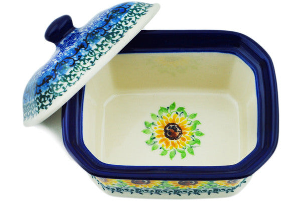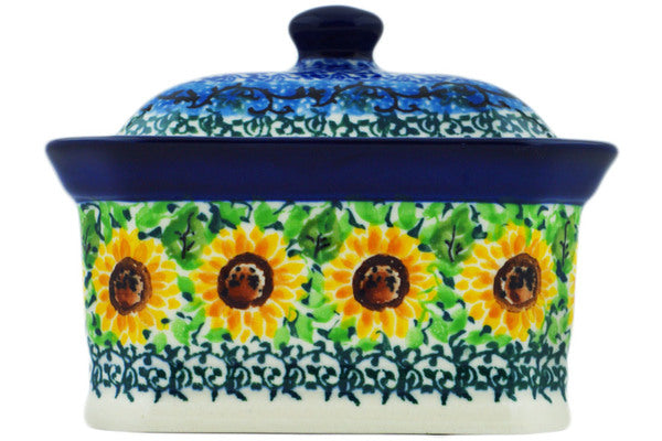 This Summer Sunnies 4" Mini Cake Box 4", Salt Box, was handmade and hand decorated in Boleslawiec, Poland by skilled artisans according to old traditional methods. This is a Polish pottery Signature Unikat, which means that it has been hand painted with both sponges and brushes and it is signed by the artist who painted it. Unikat pieces are the most intricate works of art. Larger Unikat items take hours of very careful work to finish. This Polish stoneware is microwave, dishwasher, freezer, and oven safe up to 480°F. It does not contain lead or cadmium. It is part of the Summer Sunnies Collection.