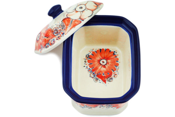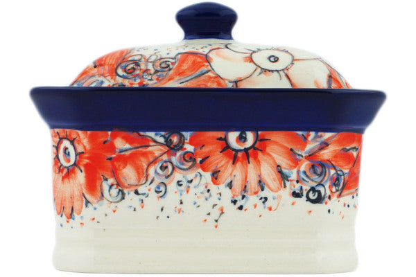 This Peachy Keen 4" Mini Cake Box 4", Salt Box, was handmade and hand decorated in Boleslawiec, Poland by skilled artisans according to old traditional methods. This is a Polish pottery Signature Unikat, which means that it has been hand painted with both sponges and brushes and it is signed by the artist who painted it. Unikat pieces are the most intricate works of art. Larger Unikat items take hours of very careful work to finish. This Polish stoneware is microwave, dishwasher, freezer, and oven safe up to 480°F. It does not contain lead or cadmium. It is part of the Peachy Keen Collection.