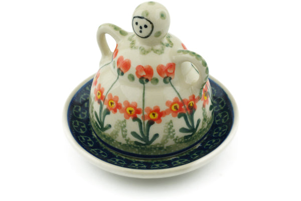 This Peach Spring Daisy 4" Mini Cheese Lady was handmade and hand decorated in Boleslawiec, Poland by skilled artisans according to old traditional methods. This Polish stoneware is microwave, dishwasher, freezer, and oven safe up to 480°F. It does not contain lead or cadmium. It is part of the Peach Spring Daisy Collection.