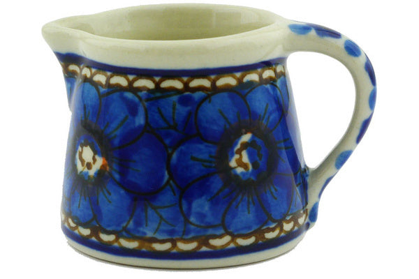 This Cobalt Poppies 2" Mini Jug was handmade and hand decorated in Boleslawiec, Poland by skilled artisans according to old traditional methods. This is a Polish pottery Signature Unikat, which means that it has been hand painted with both sponges and brushes and it is signed by the artist who painted it. Unikat pieces are the most intricate works of art. Larger Unikat items take hours of very careful work to finish. This Polish stoneware is microwave, dishwasher, freezer, and oven safe up to 480°F. It does not contain lead or cadmium. It is part of the Cobalt Poppies Collection.
