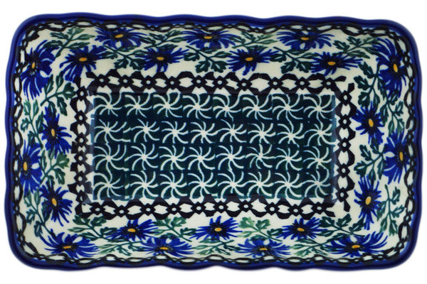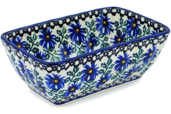This Blue Chicory 6" Mini loaf pan was handmade and hand decorated in Boleslawiec, Poland by skilled artisans according to old traditional methods. This Polish stoneware is microwave, dishwasher, freezer, and oven safe up to 480°F. It does not contain lead or cadmium. It is part of the Blue Chicory Collection.