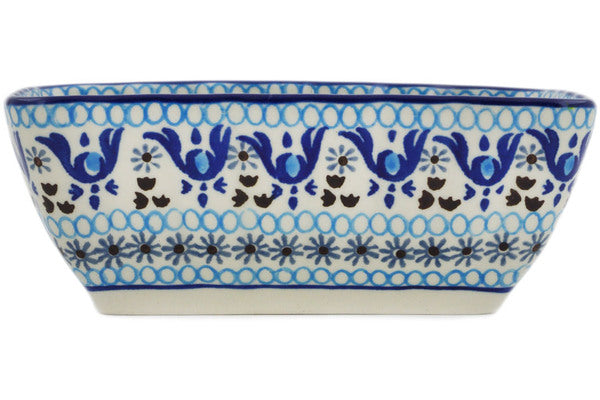 This Blue Ice 6" Mini loaf pan was handmade and hand decorated in Boleslawiec, Poland by skilled artisans according to old traditional methods. This Polish stoneware is microwave, dishwasher, freezer, and oven safe up to 480°F. It does not contain lead or cadmium. It is part of the Blue Ice Collection.