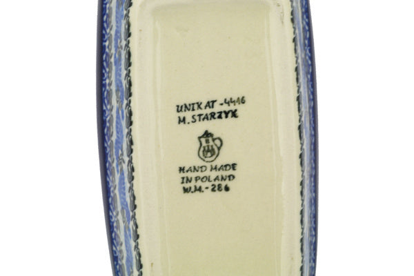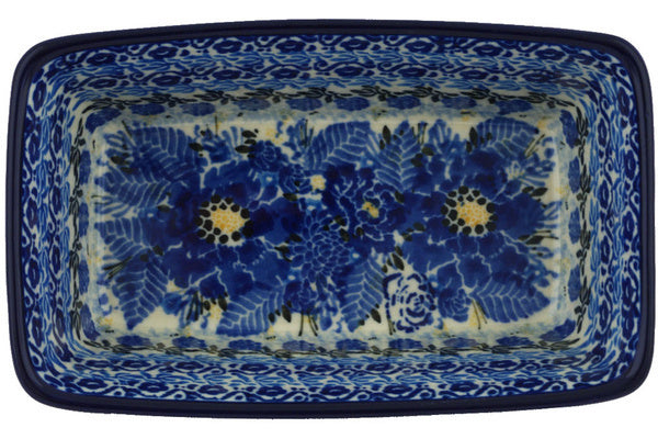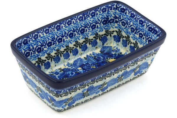 This Fields Of Blue 6" Mini loaf pan was handmade and hand decorated in Boleslawiec, Poland by skilled artisans according to old traditional methods. This is a Polish pottery Signature Unikat, which means that it has been hand painted with both sponges and brushes and it is signed by the artist who painted it. Unikat pieces are the most intricate works of art. Larger Unikat items take hours of very careful work to finish. This Polish stoneware is microwave, dishwasher, freezer, and oven safe up to 480°F. It does not contain lead or cadmium. It is part of the Fields Of Blue Collection.