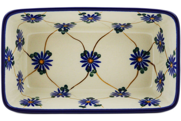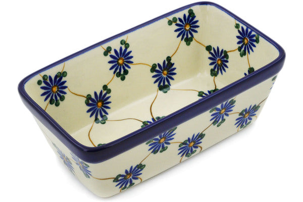 This Aster Trellis 6" Mini loaf pan was handmade and hand decorated in Boleslawiec, Poland by skilled artisans according to old traditional methods. This Polish stoneware is microwave, dishwasher, freezer, and oven safe up to 480°F. It does not contain lead or cadmium. It is part of the Aster Trellis Collection.