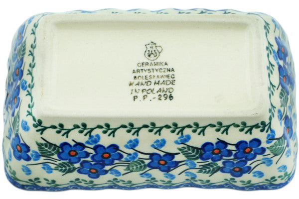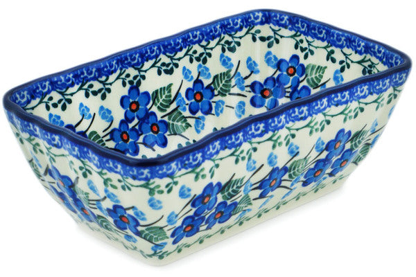 This Blue Blossom 6" Mini loaf pan was handmade and hand decorated in Boleslawiec, Poland by skilled artisans according to old traditional methods. This Polish stoneware is microwave, dishwasher, freezer, and oven safe up to 480°F. It does not contain lead or cadmium. It is part of the Blue Blossom Collection.