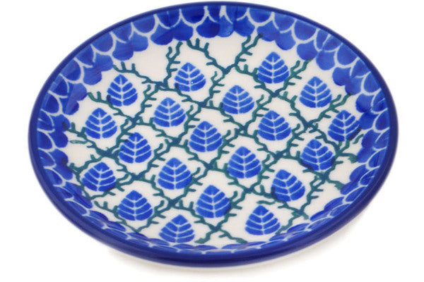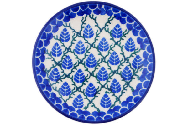 This Aspen Leaf Trellis 4" Mini Plate, Coaster plate was handmade and hand decorated in Boleslawiec, Poland by skilled artisans according to old traditional methods. This Polish stoneware is microwave, dishwasher, freezer, and oven safe up to 480°F. It does not contain lead or cadmium. It is part of the Aspen Leaf Trellis Collection.