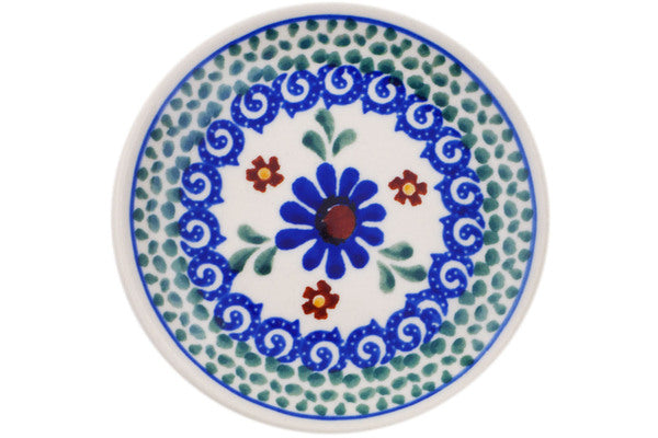 This Blue Daisy Meadow 4" Mini Plate, Coaster plate was handmade and hand decorated in Boleslawiec, Poland by skilled artisans according to old traditional methods. This Polish stoneware is microwave, dishwasher, freezer, and oven safe up to 480°F. It does not contain lead or cadmium. It is part of the Blue Daisy Meadow Collection.