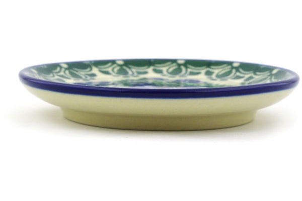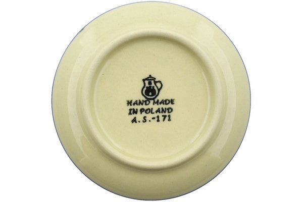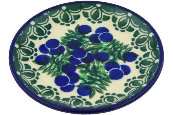 This Blueberry Fields Forever 4" Mini Plate, Coaster plate was handmade and hand decorated in Boleslawiec, Poland by skilled artisans according to old traditional methods. This Polish stoneware is microwave, dishwasher, freezer, and oven safe up to 480°F. It does not contain lead or cadmium. It is part of the Blueberry Fields Forever Collection.