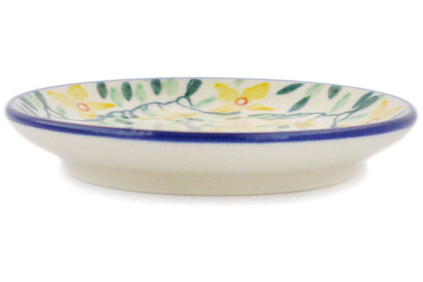 This Cheerful Jasmine 4" Mini Plate, Coaster plate was handmade and hand decorated in Boleslawiec, Poland by skilled artisans according to old traditional methods. This Polish stoneware is microwave, dishwasher, freezer, and oven safe up to 480°F. It does not contain lead or cadmium. It is part of the Cheerful Jasmine Collection.