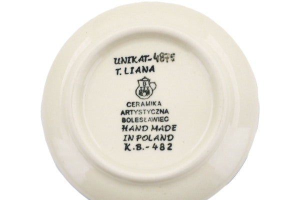 This Colors Of The Wind 4" Mini Plate, Coaster plate was handmade and hand decorated in Boleslawiec, Poland by skilled artisans according to old traditional methods. This is a Polish pottery Signature Unikat, which means that it has been hand painted with both sponges and brushes and it is signed by the artist who painted it. Unikat pieces are the most intricate works of art. Larger Unikat items take hours of very careful work to finish. This Polish stoneware is microwave, dishwasher, freezer, and oven safe up to 480°F. It does not contain lead or cadmium. It is part of the Colors Of The Wind Collection.