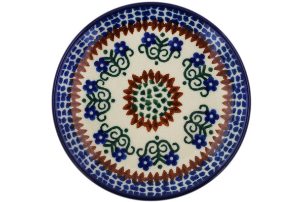 This Fanciful Daisy 4" Mini Plate, Coaster plate was handmade and hand decorated in Boleslawiec, Poland by skilled artisans according to old traditional methods. This Polish stoneware is microwave, dishwasher, freezer, and oven safe up to 480°F. It does not contain lead or cadmium. It is part of the Fanciful Daisy Collection.