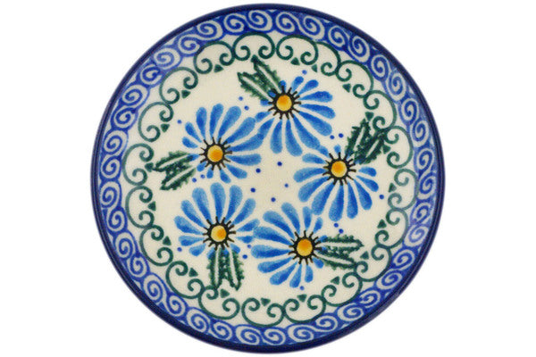 This Morning Daisy 4" Mini Plate, Coaster plate was handmade and hand decorated in Boleslawiec, Poland by skilled artisans according to old traditional methods. This Polish stoneware is microwave, dishwasher, freezer, and oven safe up to 480°F. It does not contain lead or cadmium. It is part of the Morning Daisy Collection.