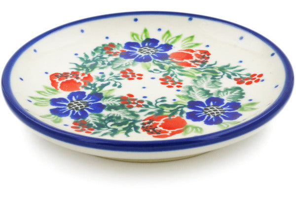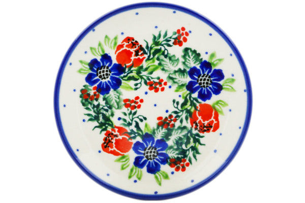 This Polish Wreath 4" Mini Plate, Coaster plate was handmade and hand decorated in Boleslawiec, Poland by skilled artisans according to old traditional methods. This Polish stoneware is microwave, dishwasher, freezer, and oven safe up to 480°F. It does not contain lead or cadmium. It is part of the Polish Wreath Collection.