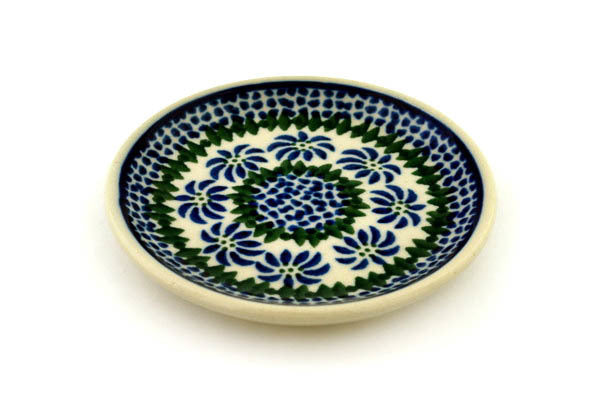 This Polka Dot Daisy 4" Mini Plate, Coaster plate was handmade and hand decorated in Boleslawiec, Poland by skilled artisans according to old traditional methods. This Polish stoneware is microwave, dishwasher, freezer, and oven safe up to 480°F. It does not contain lead or cadmium. It is part of the Polka Dot Daisy Collection.