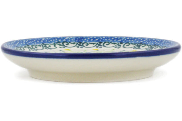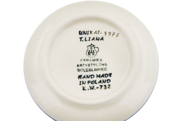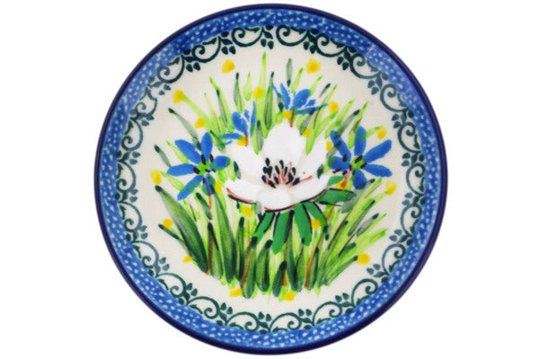 This Spring Morning 4" Mini Plate, Coaster plate was handmade and hand decorated in Boleslawiec, Poland by skilled artisans according to old traditional methods. This is a Polish pottery Signature Unikat, which means that it has been hand painted with both sponges and brushes and it is signed by the artist who painted it. Unikat pieces are the most intricate works of art. Larger Unikat items take hours of very careful work to finish. This Polish stoneware is microwave, dishwasher, freezer, and oven safe up to 480°F. It does not contain lead or cadmium. It is part of the Spring Morning Collection.