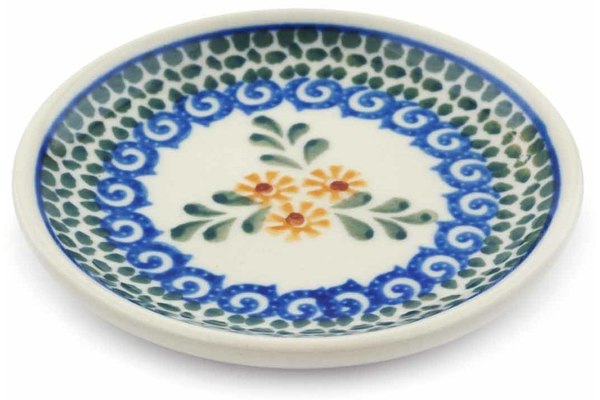 This Summer Day 4" Mini Plate, Coaster plate was handmade and hand decorated in Boleslawiec, Poland by skilled artisans according to old traditional methods. This Polish stoneware is microwave, dishwasher, freezer, and oven safe up to 480°F. It does not contain lead or cadmium. It is part of the Summer Day Collection.