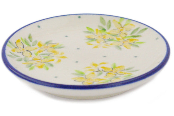 This Vanilla Blossom 4" Mini Plate, Coaster plate was handmade and hand decorated in Boleslawiec, Poland by skilled artisans according to old traditional methods. This Polish stoneware is microwave, dishwasher, freezer, and oven safe up to 480°F. It does not contain lead or cadmium. It is part of the Vanilla Blossom Collection.
