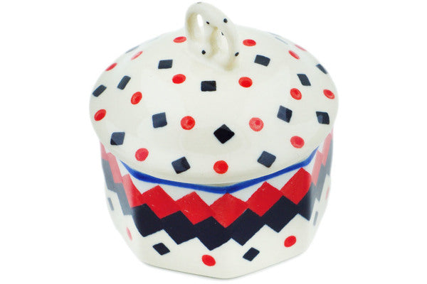 This Black Diamond 3" Mini Pretzel Jar 3" was handmade and hand decorated in Boleslawiec, Poland by skilled artisans according to old traditional methods. This Polish stoneware is microwave, dishwasher, freezer, and oven safe up to 480°F. It does not contain lead or cadmium. It is part of the Black Diamond Collection.