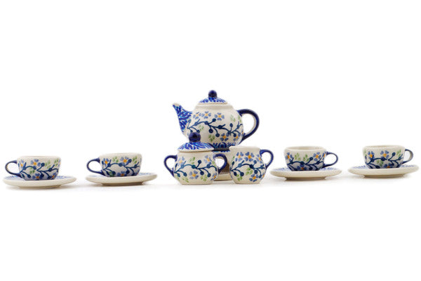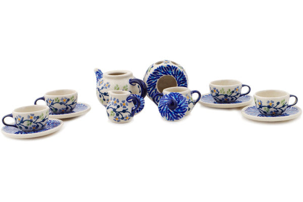 This Branches Of Delicacy 4" Mini Tea Set was handmade and hand decorated in Boleslawiec, Poland by skilled artisans according to old traditional methods. This Polish stoneware is microwave, dishwasher, freezer, and oven safe up to 480°F. It does not contain lead or cadmium. It is part of the Branches Of Delicacy Collection.