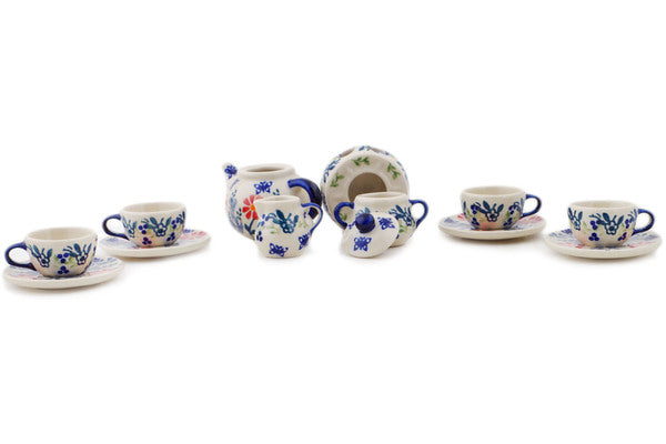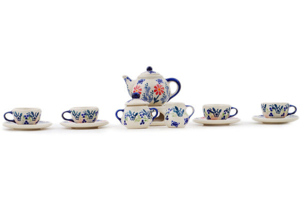 This Last Summer Flowers 4" Mini Tea Set was handmade and hand decorated in Boleslawiec, Poland by skilled artisans according to old traditional methods. This Polish stoneware is microwave, dishwasher, freezer, and oven safe up to 480°F. It does not contain lead or cadmium. It is part of the Last Summer Flowers Collection.