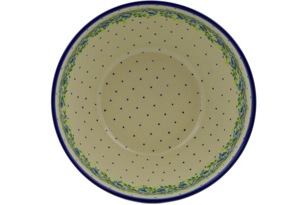 This Blue Wreath 9" Mixing bowl, serving bowl was handmade and hand decorated in Boleslawiec, Poland by skilled artisans according to old traditional methods. This Polish stoneware is microwave, dishwasher, freezer, and oven safe up to 480°F. It does not contain lead or cadmium. It is part of the Blue Wreath Collection.