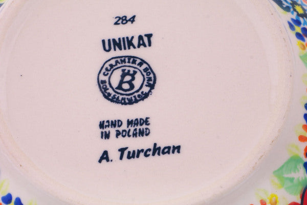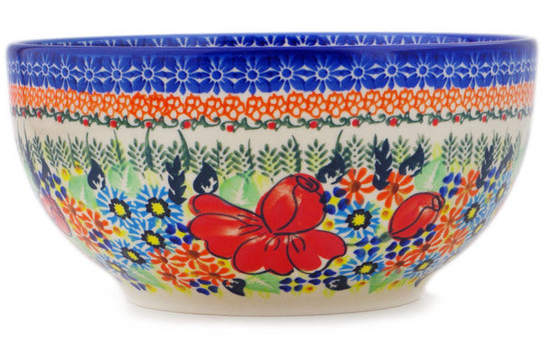 This Bold Poppies 9" Mixing bowl, serving bowl was handmade and hand decorated in Boleslawiec, Poland by skilled artisans according to old traditional methods. This is a Polish pottery Signature Unikat, which means that it has been hand painted with both sponges and brushes and it is signed by the artist who painted it. Unikat pieces are the most intricate works of art. Larger Unikat items take hours of very careful work to finish. This Polish stoneware is microwave, dishwasher, freezer, and oven safe up to 480°F. It does not contain lead or cadmium. It is part of the Bold Poppies Collection.